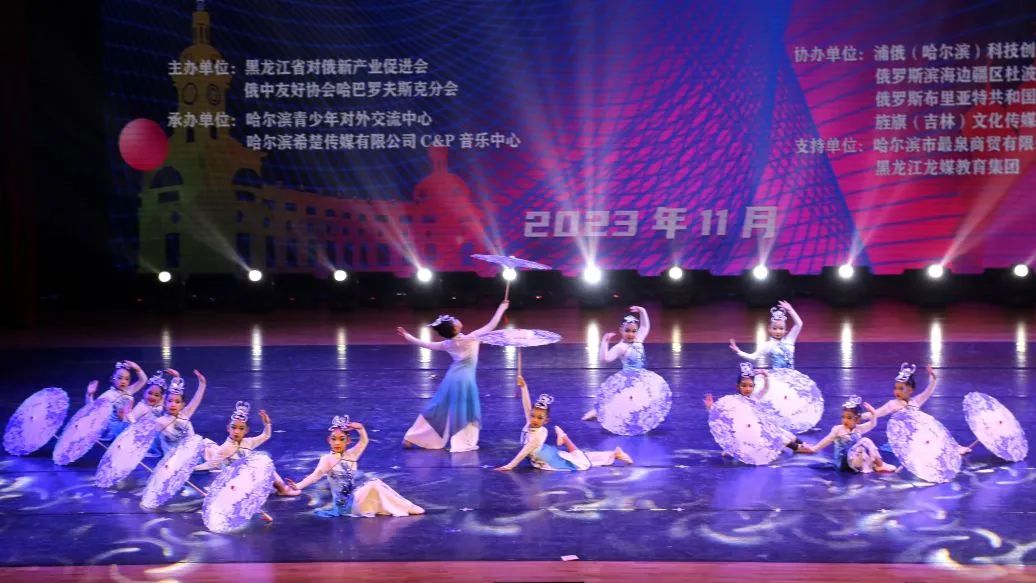 由黑龙江省对俄新产业促进会、俄中友好协会哈巴罗夫斯克分会主办,浦俄(哈尔滨)科技创新服务有限公司承办的哈尔滨首届2023中俄中小学生艺术节如约开幕。中俄青少年的节目一共61个,类型丰富,包括舞蹈、歌曲、乐器演奏、诗朗诵、时装剧等等。两国青少年尽情在台上施展技艺,这天下午,点亮青年宫舞台的不是炫目的灯光,而是孩子们的才华。