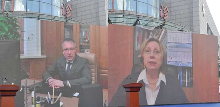 俄方合作伙伴俄罗斯巴甫洛夫国立医科大学医学院院长、生物医学科教学院院长、医学博士,教授季穆尔·德米特里耶维奇·弗拉索夫;俄罗斯阿尔马佐夫国家医学研究中心分支机构-俄罗斯波列诺夫神经外科研究院院长萨莫切尔内赫·康斯坦丁·阿列克桑德罗维奇;俄罗斯莫斯科赫尔岑肿瘤研究所肿瘤激光和光动力诊断与治疗中心主任,国家光动力协会理事会主席菲隆年科·叶莲娜·维亚切斯拉沃夫娜女士,在线上通过视频致辞祝贺,并对哈尔滨中俄友好医院和中俄医用激光临床培训基地的未来给予很高期望,同时希望借此契机促进两国医疗事业深度交流发展。