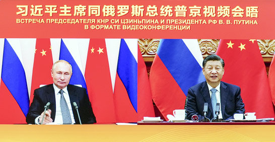 中俄领导人举行视频会晤 就两国核心利益和国际热点问题交换意见